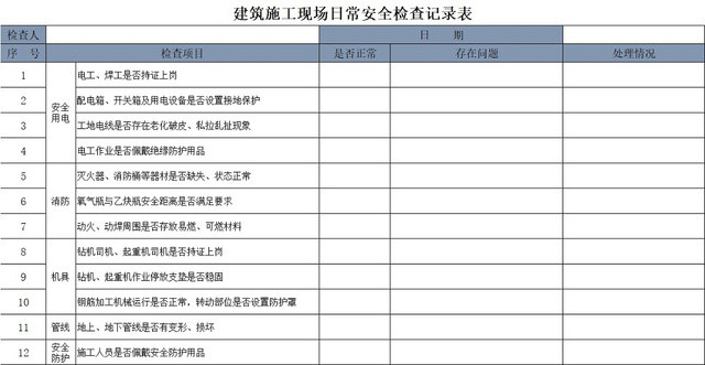 包站长提供建筑施工现场安全检查记录表灰色EXCEL模板免费下载,作品有版权,可商用,文字图片等主体内容皆可修改,更多关于安全检查记录下载,就来包站长。