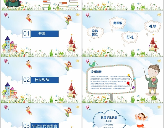 儿童卡通小学生毕业典礼毕业季清新多图PPT模板