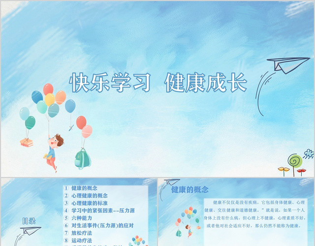 包站长提供蓝色卡通小学生心理健康快乐学习健康成长心理健康讲座PPT模板免费下载,作品有版权,可商用,文字图片等主体内容皆可修改,更多关于其他课件下载,就来包站长。