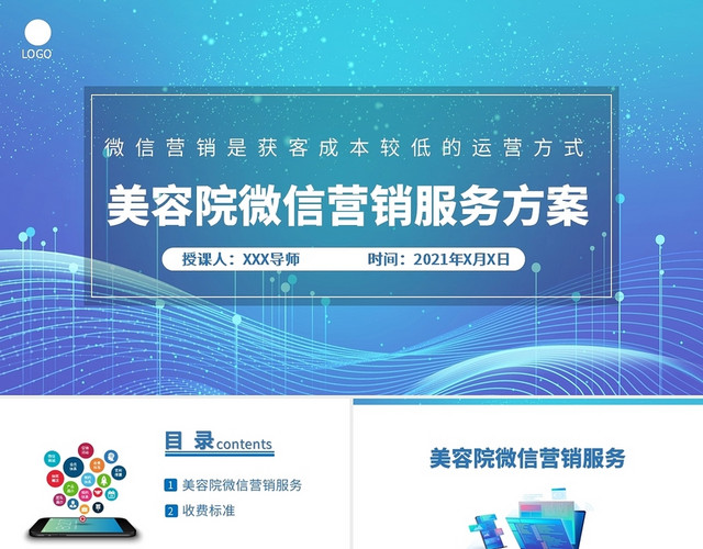 蓝色商务风格美容院微信营销服务方案PPT