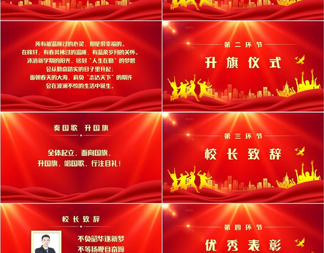 包站长提供红色大气励志高中开学典礼PPT模板免费下载,作品有版权,可商用,文字图片等主体内容皆可修改,更多关于其他课件下载,就来包站长。